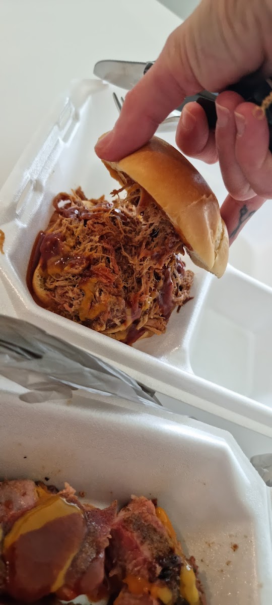One of the highlights of the restaurant's menu is the Pulled Pork Sandwich-a perfect blend of tender, smoky pulled pork piled high on a soft bun. If you're in the mood for something more hearty, the Brisket Plate with Double Apple Pie Baked Beans is a must-try. The brisket is cooked to perfection, with a perfect smoky flavor and just the right amount of tenderness. Paired with the double apple pie baked beans, it’s a meal that will satisfy even the heartiest appetite.